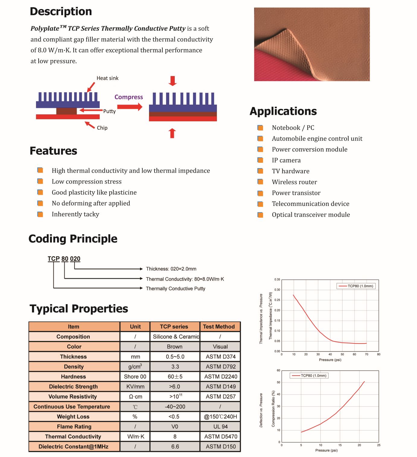 TM TCP系列導(dǎo)熱泥是一種柔軟的具有導(dǎo)熱性的柔性間隙填充材料。導(dǎo)熱系數(shù)為8.0 W/m·K,可以在低壓下提供卓越的熱性能。" />