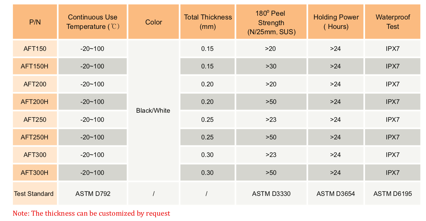 TM AFT 系列防水泡棉膠帶是一種雙面膠帶,由丙烯酸泡棉和丙烯酸粘合劑組成。這種防水泡棉帶由于其微觀和獨(dú)立的細(xì)胞結(jié)構(gòu)而非常薄和柔軟。它具有高沖擊吸收、優(yōu)異的防水性能、良好的防塵性能和回彈性。" />